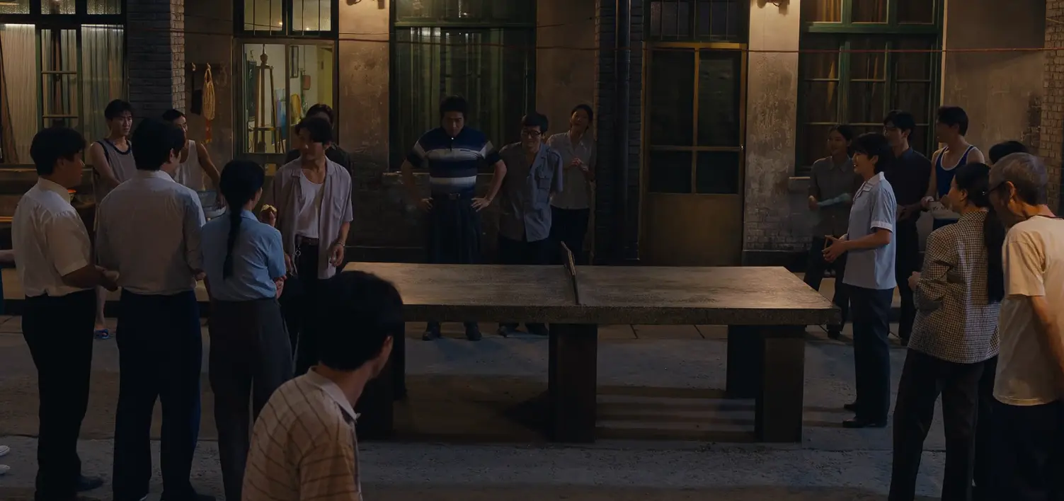 小陈却只是攥着乒乓球拍站在原地,浅蓝色的老式衬衫衬得她身形瘦瘦的,抬眼看向郑德诚的眼神里满是不信,嘴微微张着吐出那句“书记你说话算话吗?”。