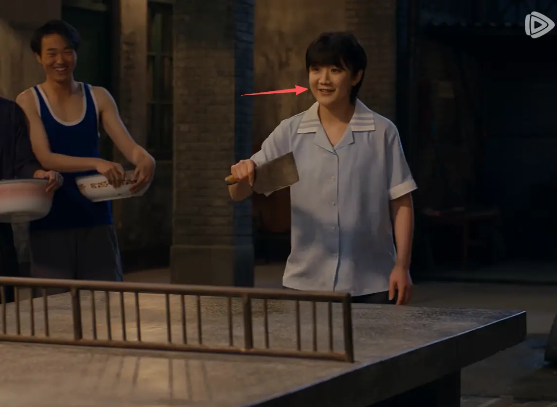像放下球拍的随意、借菜刀的自然、拿菜刀对战时的自信,每一个小细节都透着真实,就像真的是院里那个会打乒乓球的小姑娘。