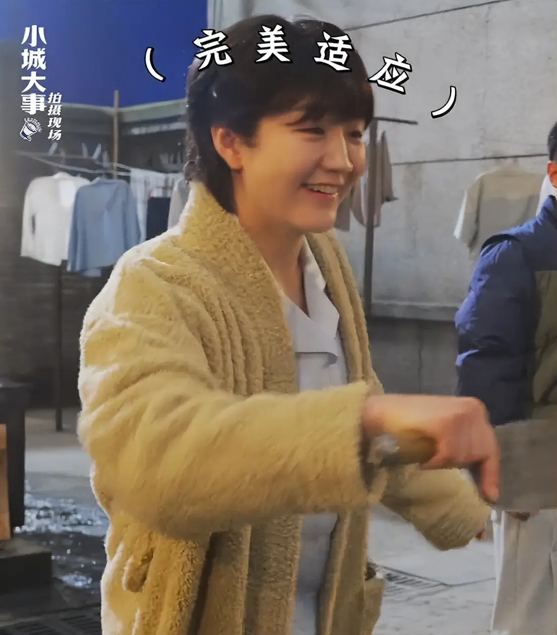 陈梦没演过戏,她对片场也不熟悉,来《小城大事》剧组时一开始很紧张,她害羞低头然后紧握双拳的样子看着非常可爱。